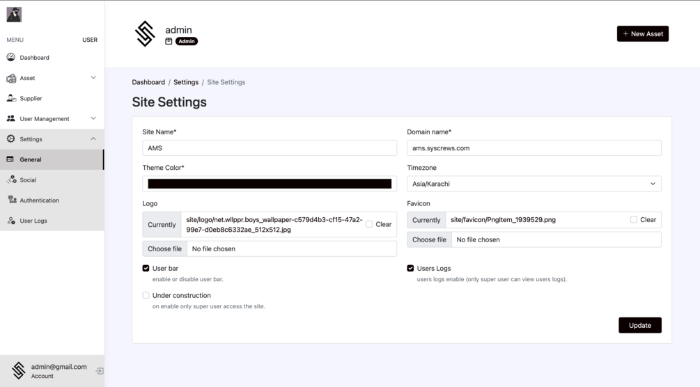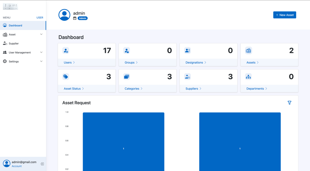 Asset Management System (AMS) is a multi-functional all most complete web application developed using Django Core. It enables you to manage all kinds of assets for your company through proper monitoring. You can manage assets available in your office, like computers, Printers, Portable Hard-disk, Pen-drive, etc.